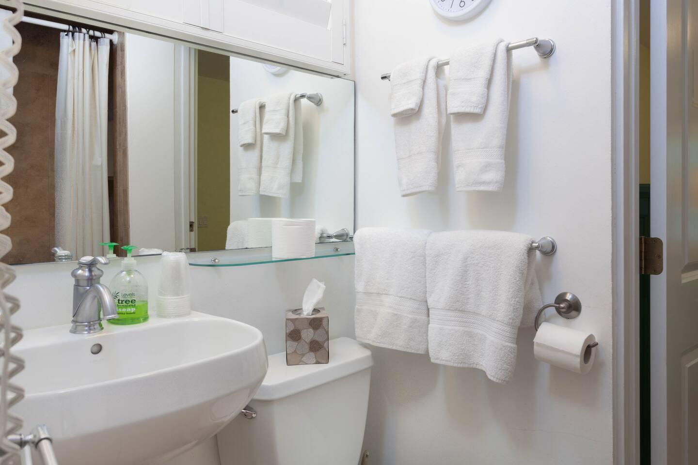 - Wesentliches Handtücher, Bettlaken, Seife, Toilettenpapier und Kissen