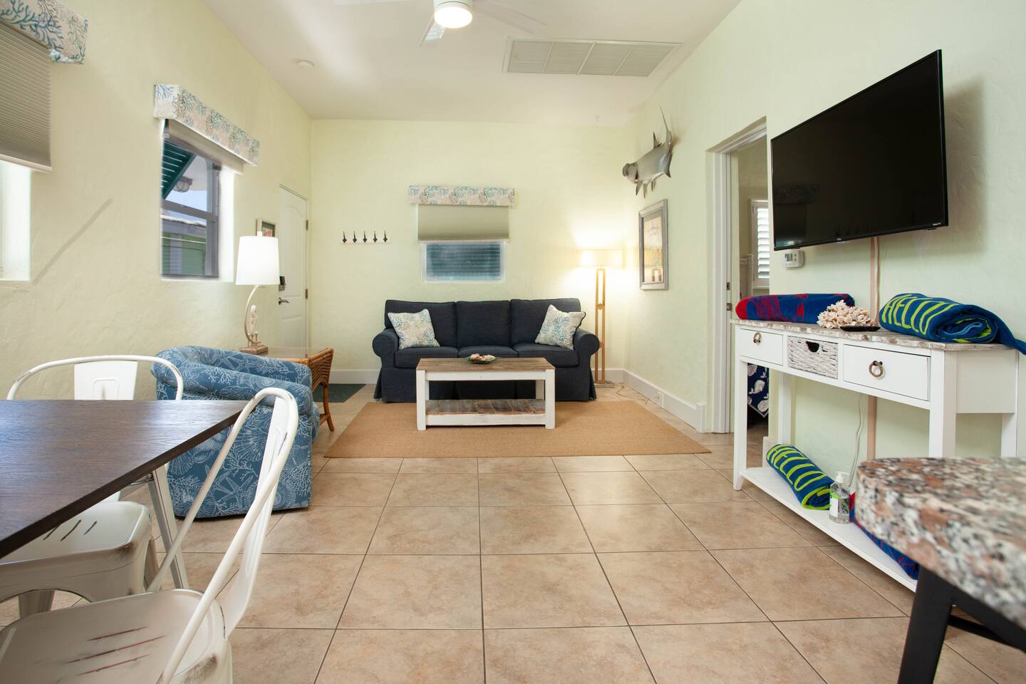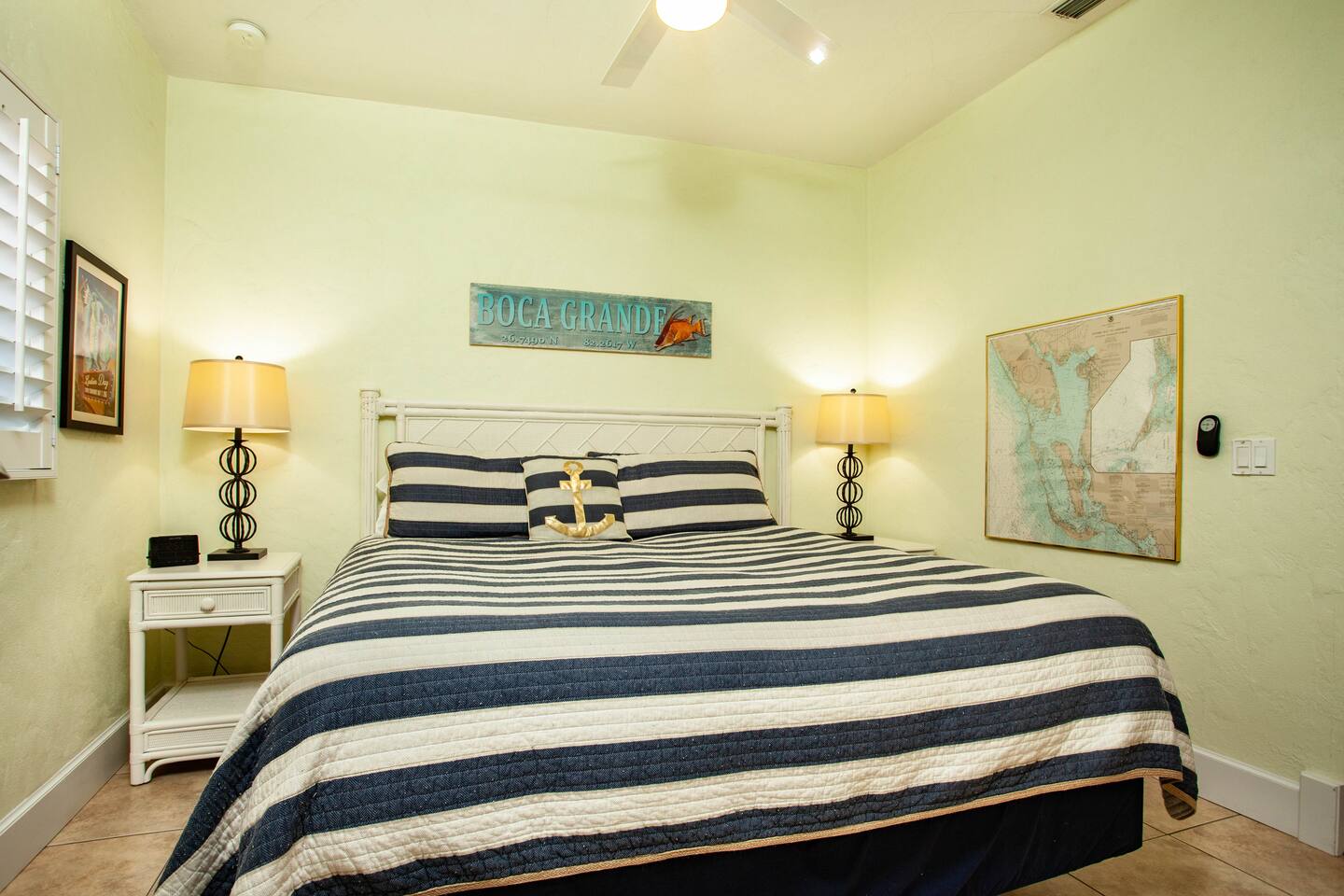 Nous avons traversé Milton et Helene et sommes prêts à vous accueillir ! Un superbe appartement de 2 chambres et une salle de bain, situé au deuxième étage, en plein cœur du quartier historique de Boca Grande sur la magnifique île de Gasparilla. En face du restaurant The Temp et à deux pas du marché Hudson's. Envie d’aller à la plage ? Pas de souci, elle est juste au bout de la rue. À seulement 3 minutes à pied du Gasparilla Inn. Les voyageurs bénéficient d'une remise de 10 % sur la location de voiturettes de golf et de vélos auprès de Gasparilla Adventures.
